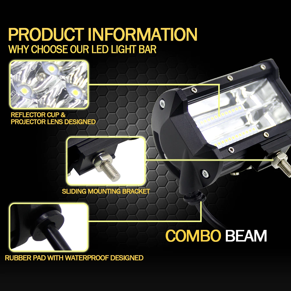 Новый 5 "72 Вт Авто Автомобильный светодиодный рабочий светильник бар Прожекторы для Jeep Offroad 4WD грузовик Трактор Лодка прицеп 4x4 внедорожник ATV 12V 24V Foglights