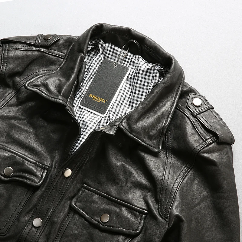 Мужская кожаная куртка AVIREX FLY2018, модная новая брендовая Облегающая рубашка из натуральной овечьей кожи, тонкое пальто из натуральной кожи