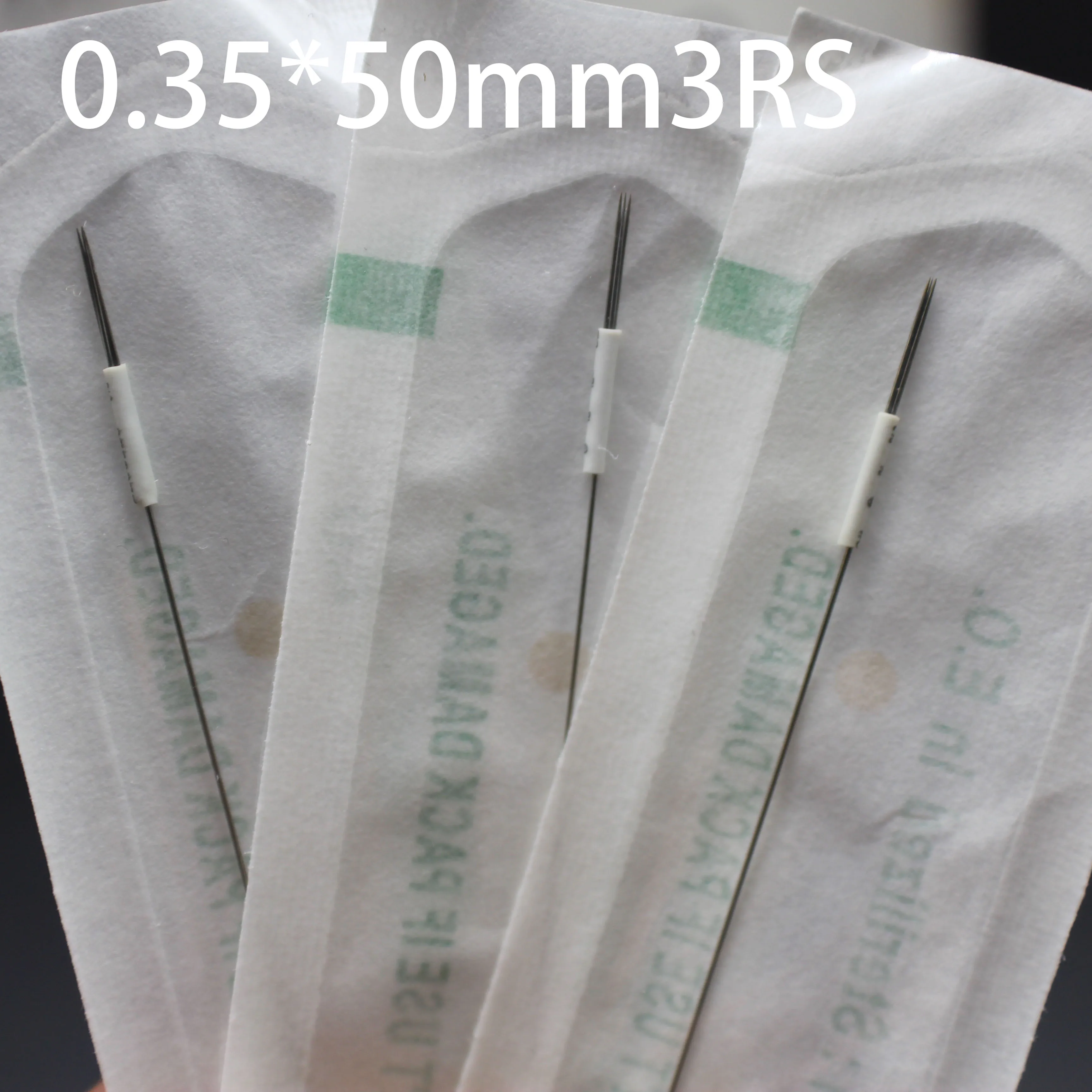 100 шт. стерилизованные 0,35x50 мм 3RS иглы для перманентного макияжа, татуировки бровей, татуировки, иглы для губ, подводки для глаз и тела, дизайн татуировок