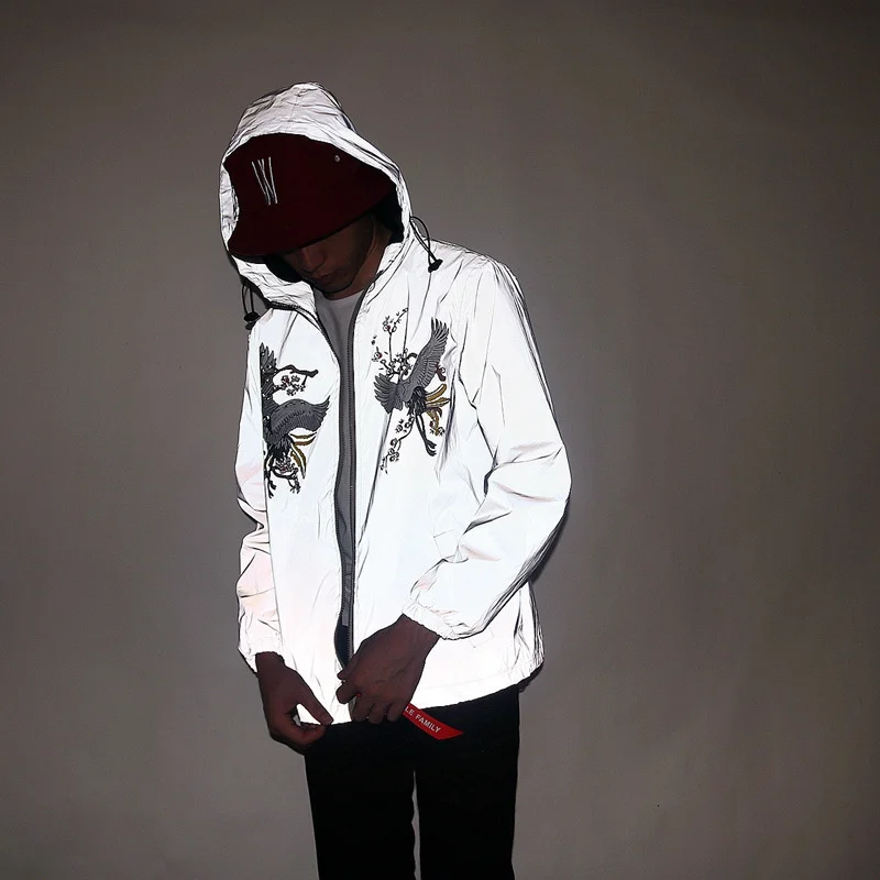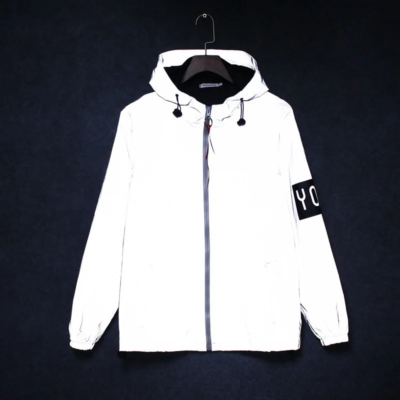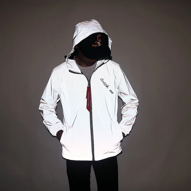 Светоотражающая куртка для мужчин и женщин, повседневная Водонепроницаемая ветровка с капюшоном в стиле хип-хоп, уличная одежда с принтом, блестящие ночные куртки, 5XL