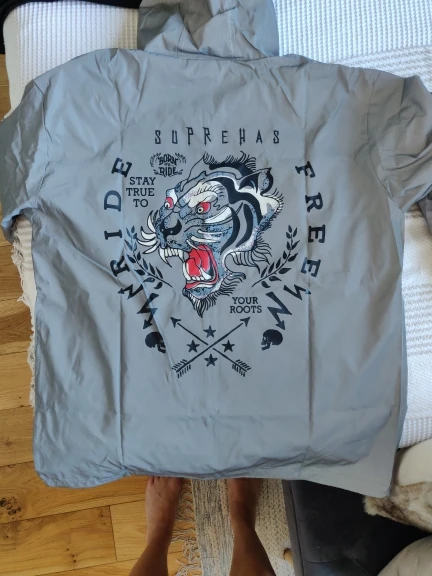 Хорошая ветровка.Швы ровные.Рисунок нанесён качественно.Заказывала размер М.Подошёл на 44 российский размер.Вес 50кг.Рост 157 см.