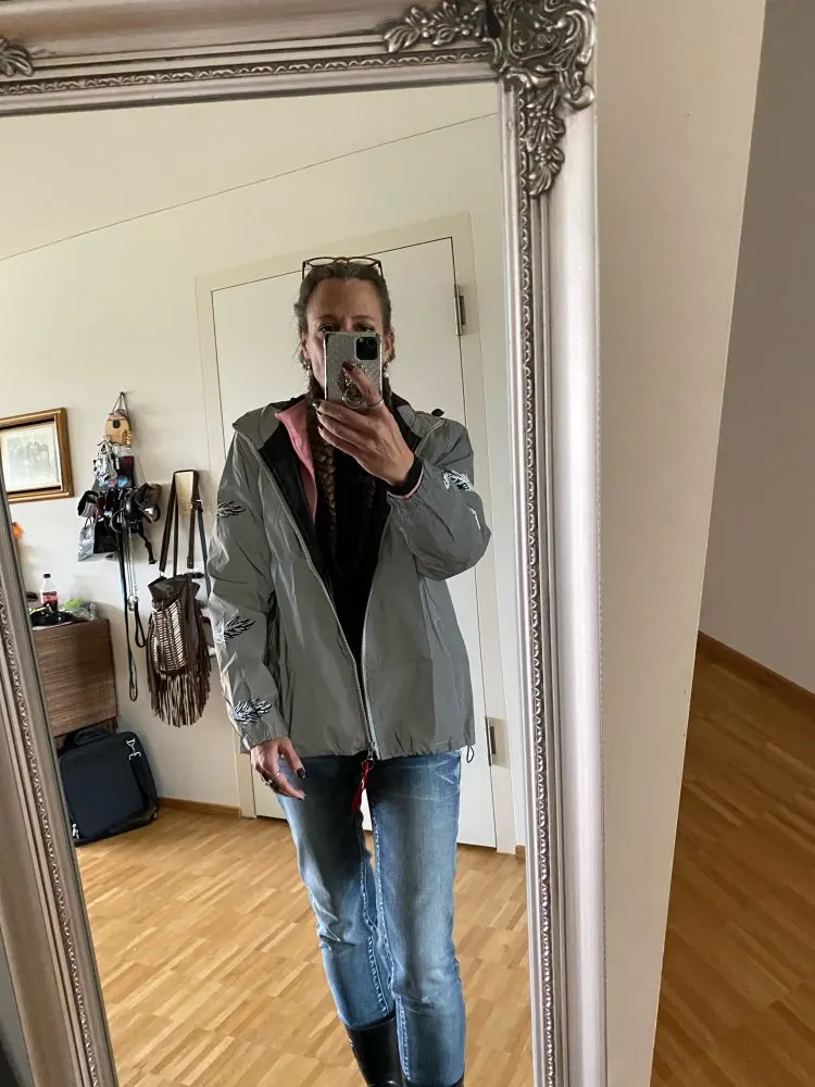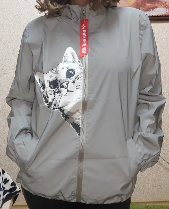 Куртка очень тонкая без подкладки. Свет отражает норм. Карманы и молния - исправны.