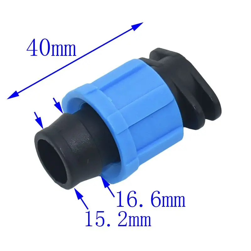 Соединитель 16 мм капельная лента, блокировка резьбы, легко отпадает.