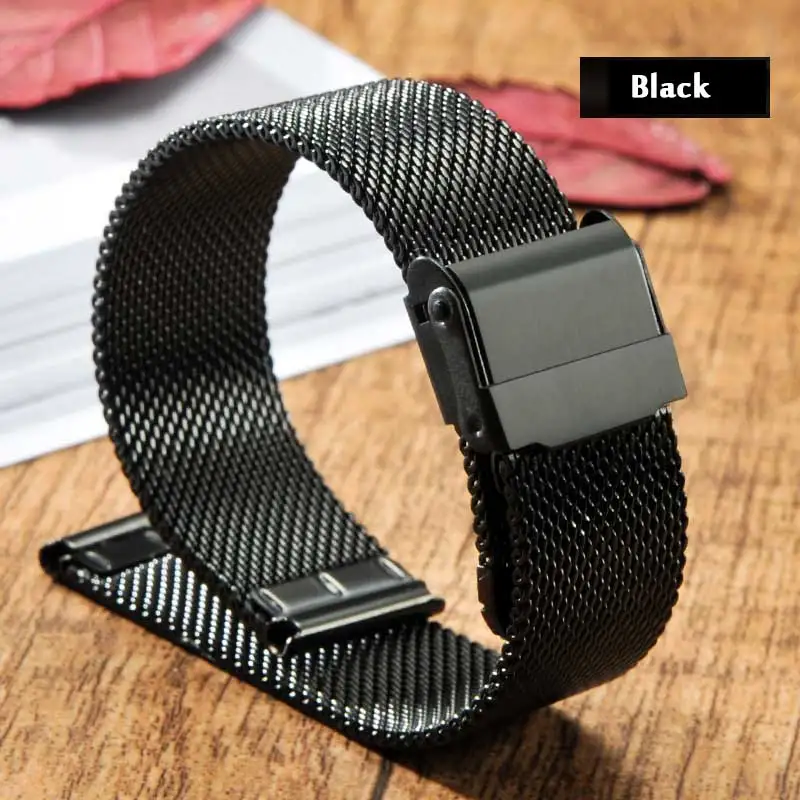Сменные ремешки для часов 12, 14, 16, 18, 20, 22 мм, из нержавеющей стали, серебристого, золотистого, розового, черного цветов, браслеты для часов, мужские, 2017