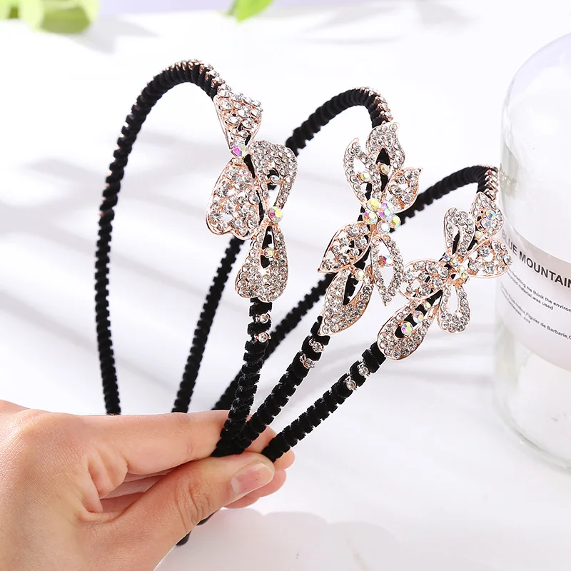Повязка на голову женская с большим жемчугом и бантом, корейский бант, стразы, нескользящая ткань, плюшевая поверхность, аксессуары для волос, праздничный головной убор для девочек