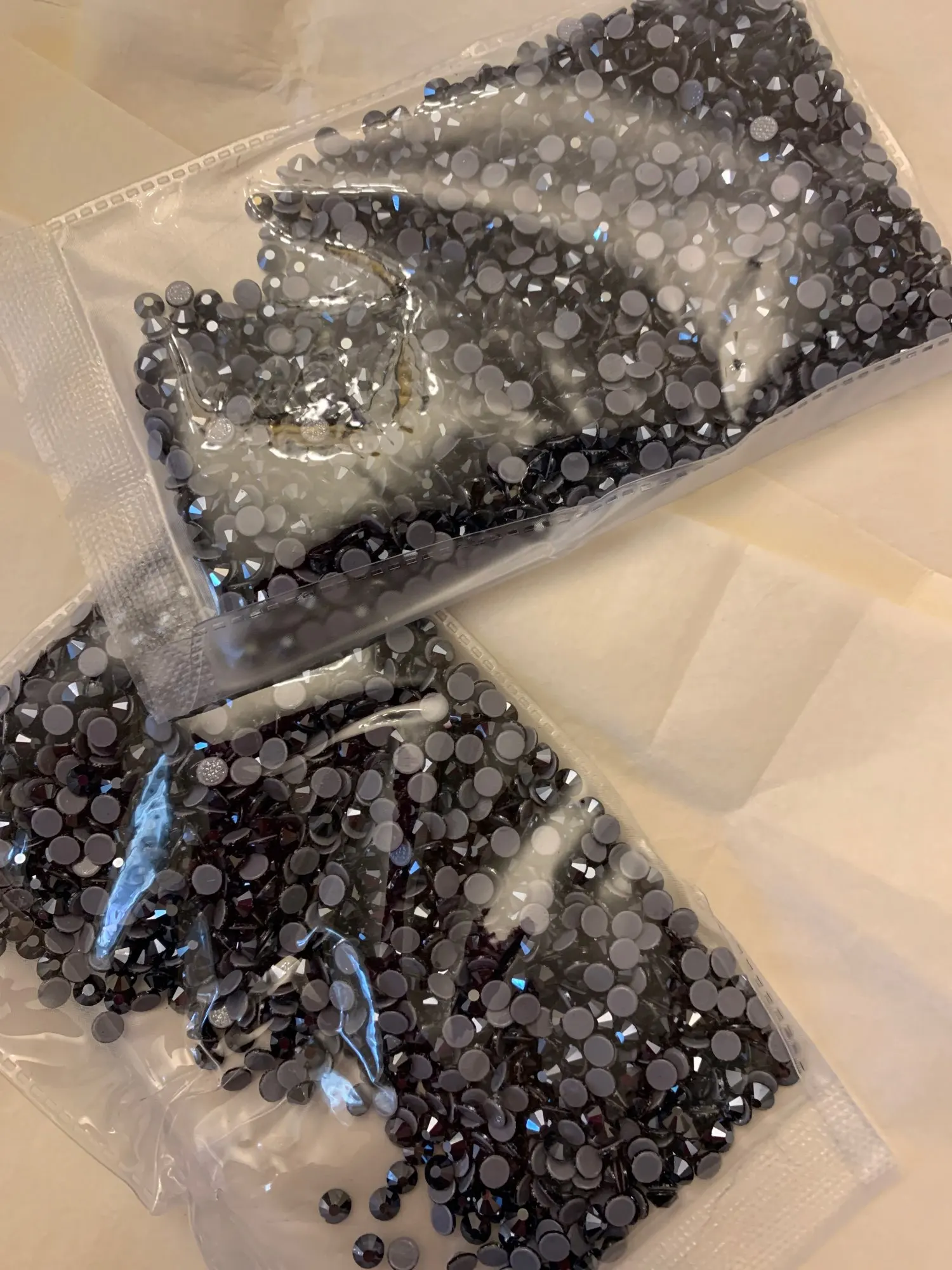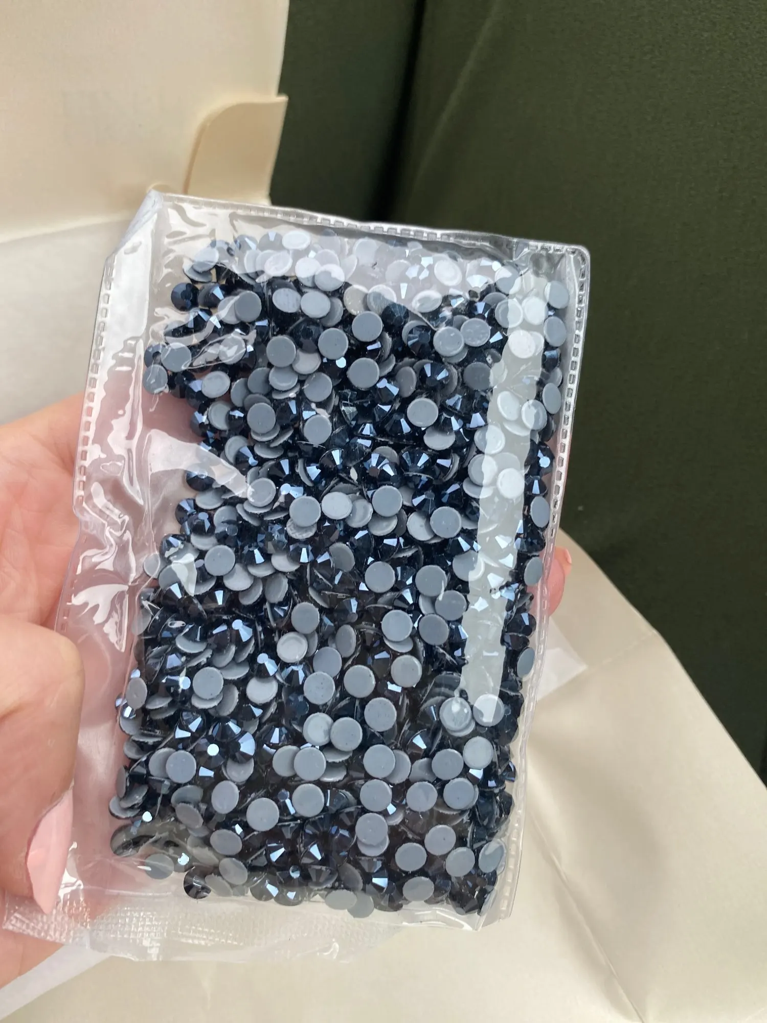 камни упакованы хорошо. брака нет . блестят хорошо. отсвечивают не чисто черныс блеском , а немного сине-серым. стразами довольна. В Беларуси покупала такие же дороже.