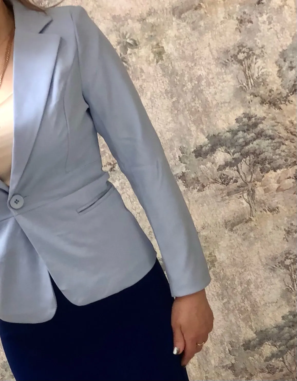 Женский облегающий Блейзер, офисный синий пиджак с отложным воротником, Повседневная Верхняя одежда с длинным рукавом, модель ZZ220, 2021