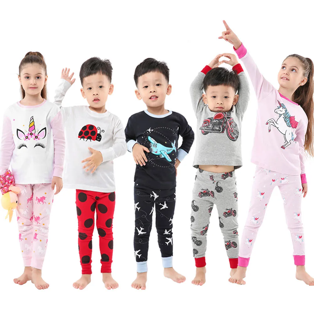 Пижамы из 100 хлопка для маленьких мальчиков детские пижамы в байкерском стиле, пижамные комплекты с единорогом для девочек от 1 до 8 лет детская одежда для сна