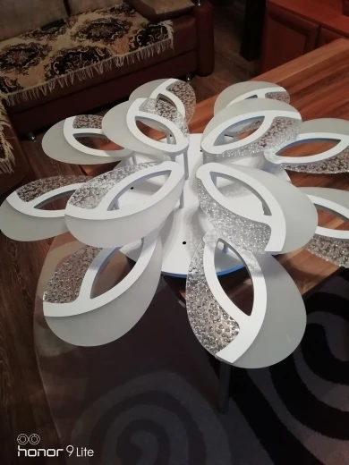 Люстры очень красивые (2 шт), продавец любезный и очень общительный. к сожалению один лепесток из 12 на одной люстре работает реверсивно, т.е. выдает желтый когда на остальных холодный белый. фото. отключил лепесток, почти не заметно. Продавца рекомендую!