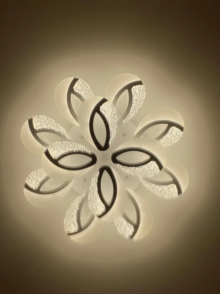 Люстра огонь. Светит ярко и регулируется почти до минимума яркости. Буду заказывать в другие комнаты, но поменьше. Рекомендую всем. На 18м2 12лепестков многовато, но можно сделать яркость поменьше. Упаковка супер. В подарок светильник от usb. Доставка из РФ 9 дней до Тулы.