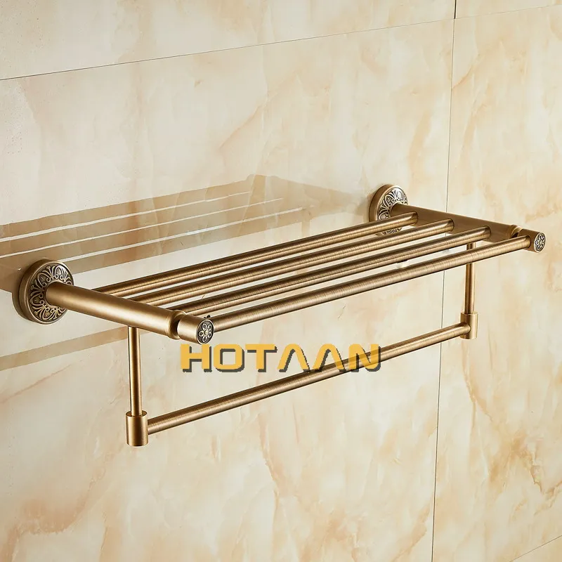 Алюминиевая настенная квадратная Античная латунная вешалка для полотенец, активный держатель для полотенец, двойная Полка для полотенец, аксессуары для ванной комнаты