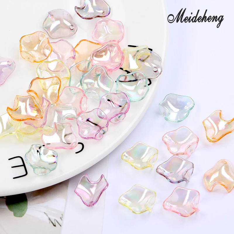 AB цветные акриловые пионы, прозрачные цветные бусины с покрытием, маленький Лотос, лист ручной работы, украшения, аксессуары, украшение