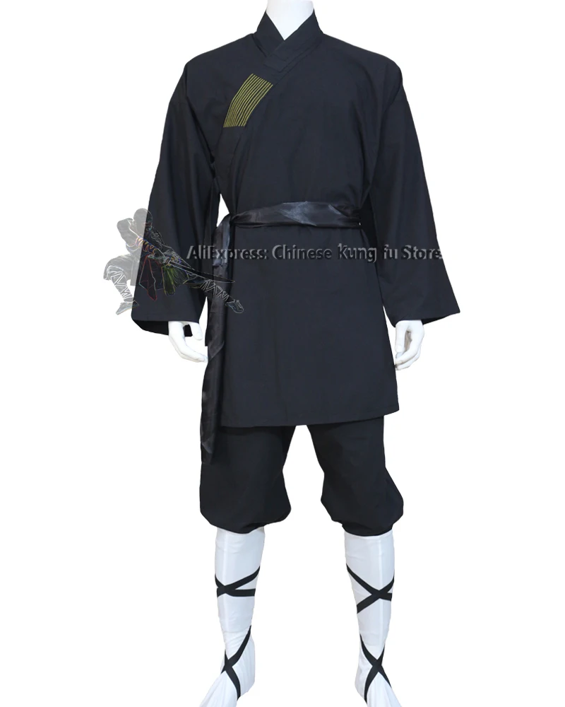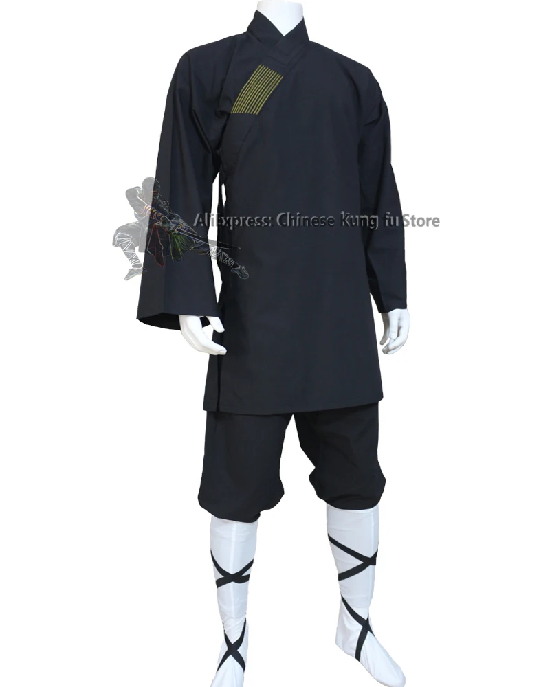 Костюм-монах Шаолинь из черного хлопка, униформа Тай-Чи для боевых искусств, одежда кун-фу в стиле крыла для мальчиков и девочек, комплекты гунфу