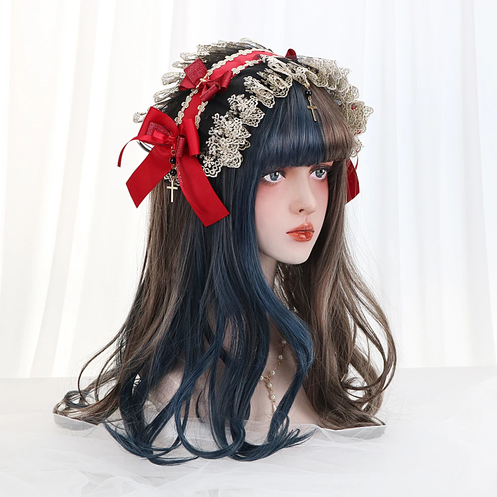 Парик для косплея Лолиты с длинной волной 20 дюймов, термостойкие синтетические волосы коричневого и синего цвета с эффектом омбре в японском стиле Харадзюку, для косплея, для женщин
