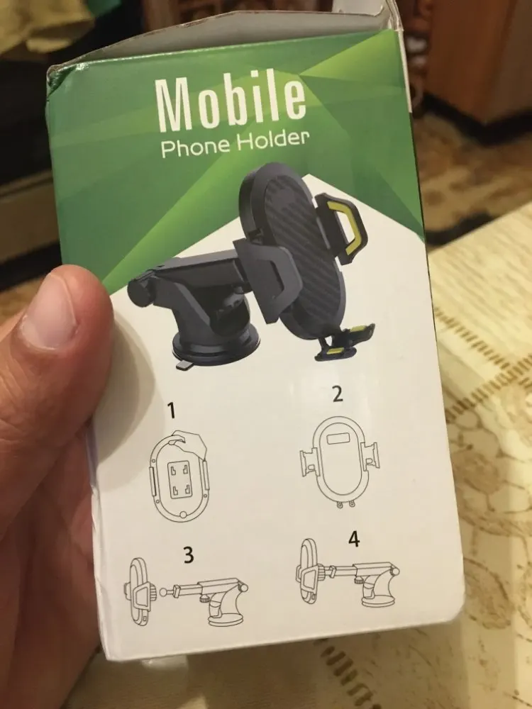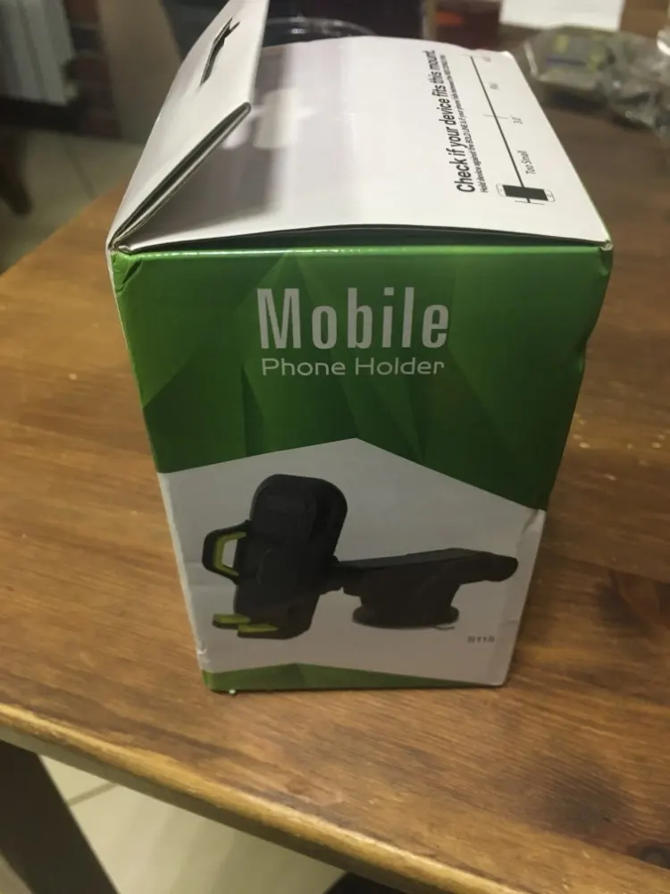 Посылка прибыла через 25 дней. Входите в картонную коробку. Держатель очень хорошо сделан, отличная ручная работа, качественный пластик. Попробуйте снова в своем автомобиле. Много возможностей для позиционирования, выдвижная рука и медиа прочная мягкая резина для телефона. Высокая цена.