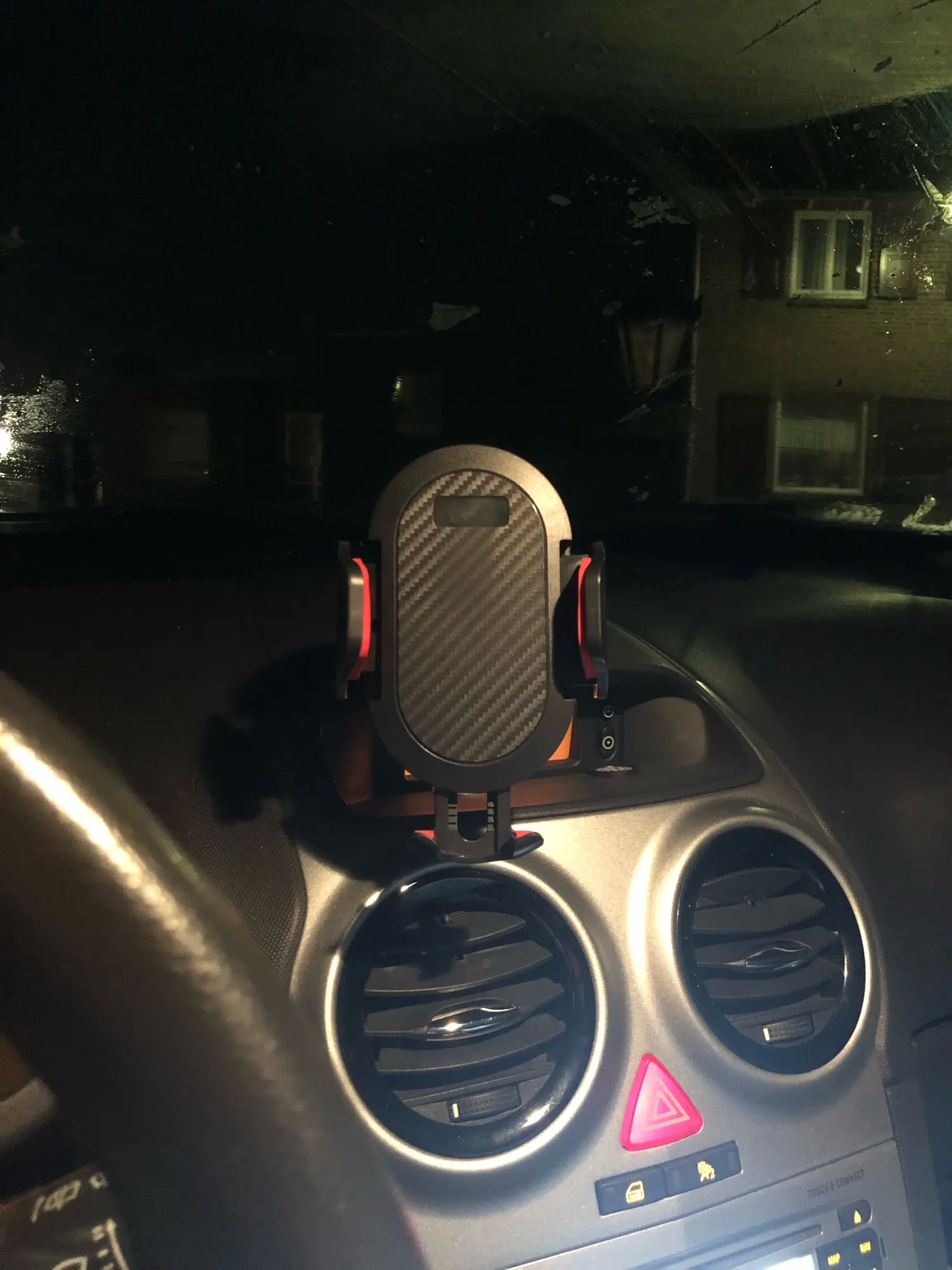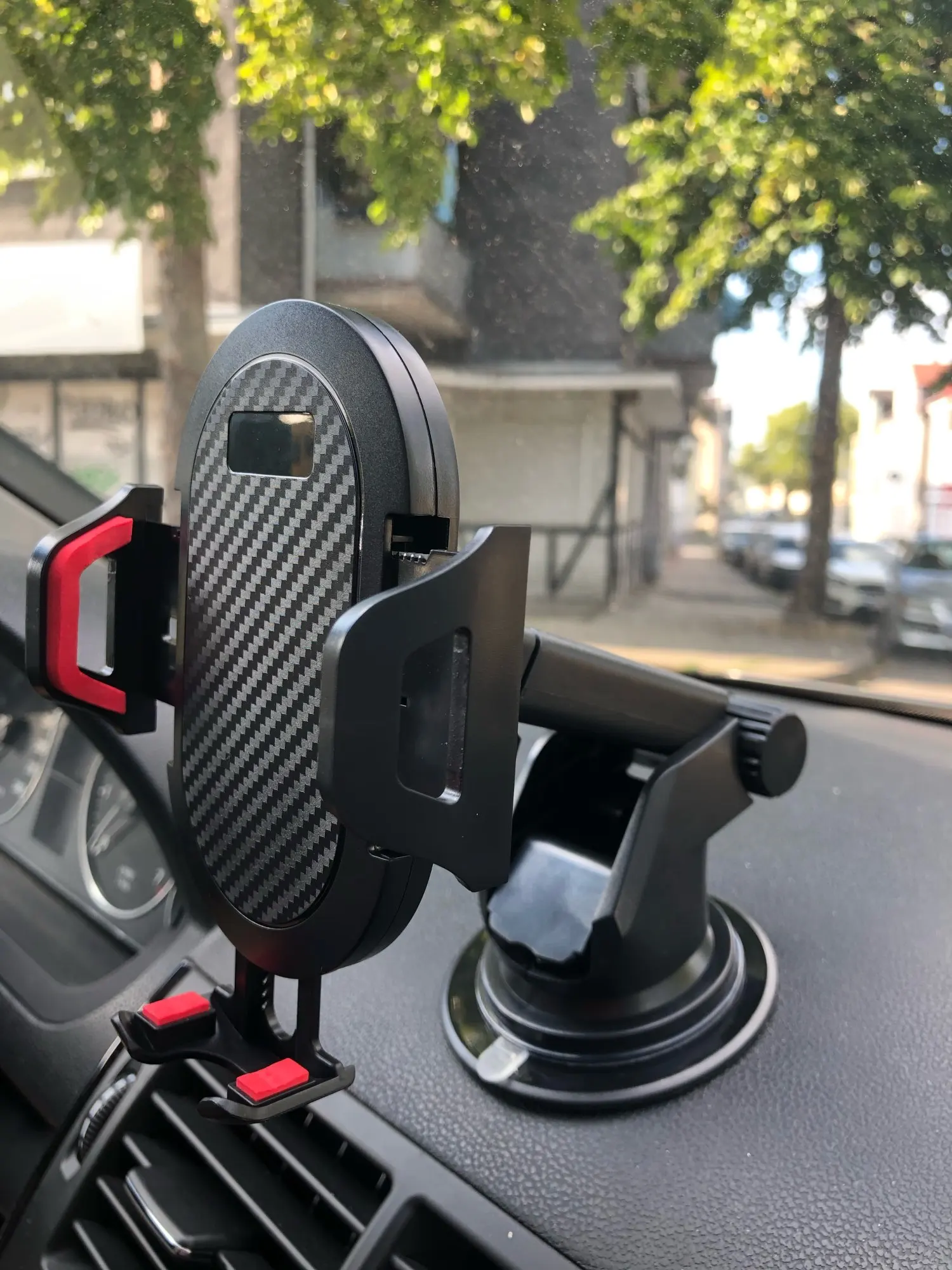отличный держатель. Широкая возможность настройки положения телефона. Увеличить ширину и длину места под телефон можно легким нажатием на соответствующие кнопки на задней стороне панели. На шершавую поверхность автомобильной панели прикрепился крепко.