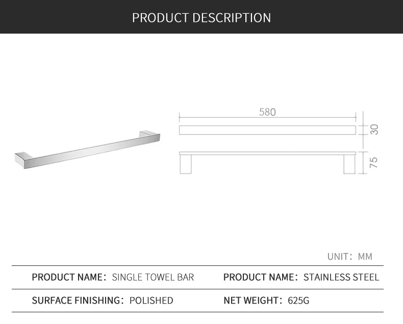 24-дюймовая вешалка для полотенец из нержавеющей стали, одноместная стойка для полотенец, квадратная вешалка для полотенец в отеле, держатель для полотенец для душа