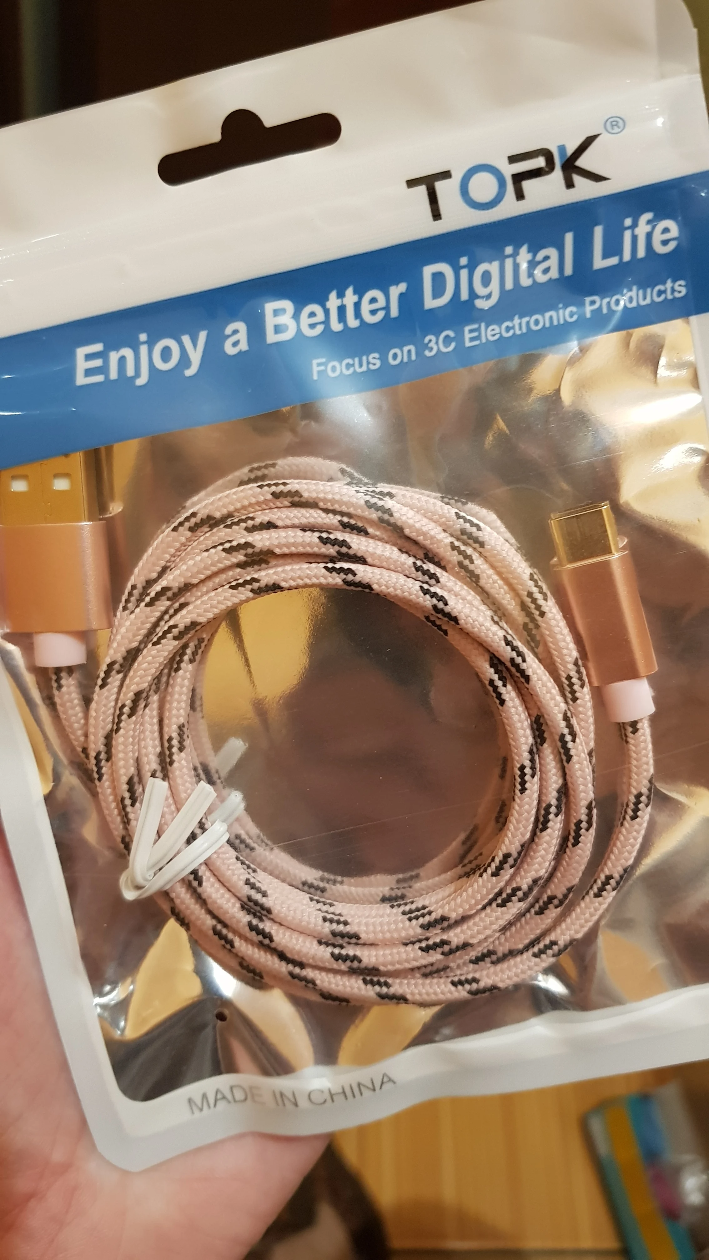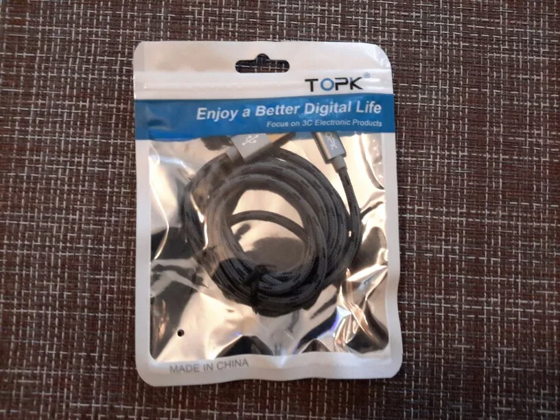 TOPK как обычно радует, за свою цену делают качественный продукт. Кабель соответствует описанию и заявленным характеристикам. Выполнен в тканевой оплетке, достаточно мягкий. Поддерживает быструю зарядку. Контак плотный и уверенный в "золотом" исполнении. Надеюсь прослужит долго. Предыдущий для микроюсб служит до сиг пор) Спасибо продавцу! Рекомендую!