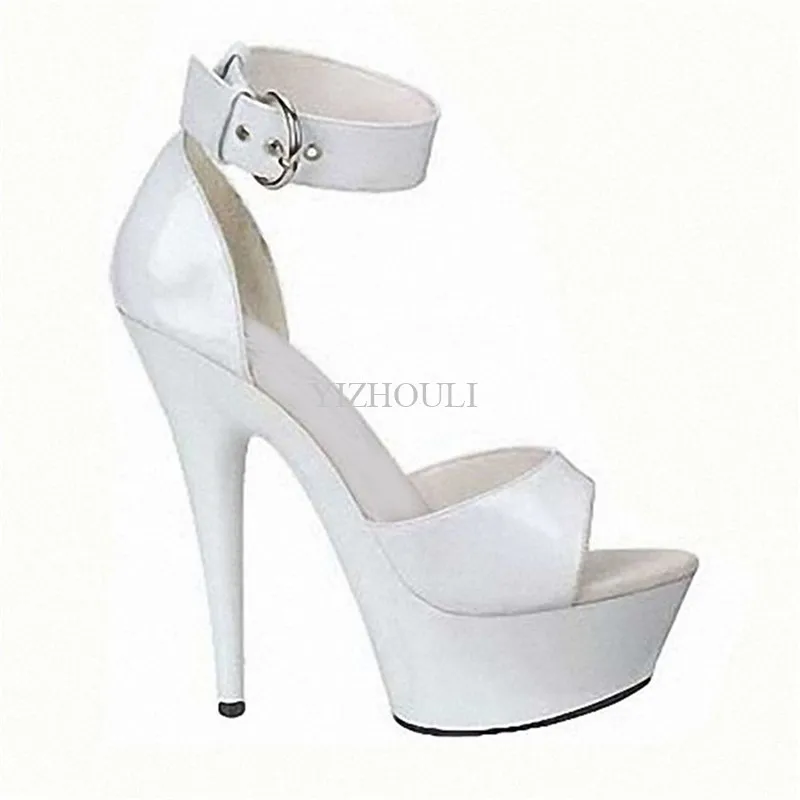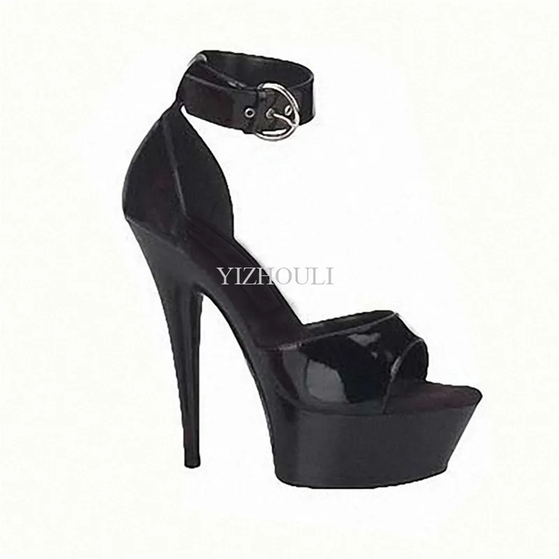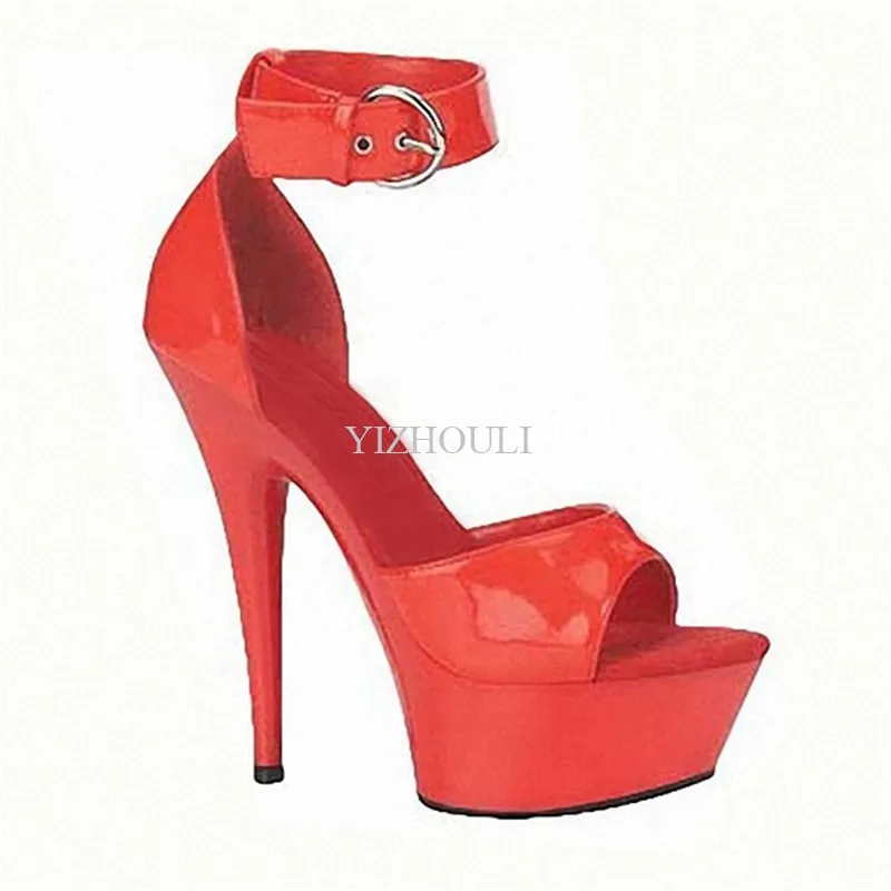 Туфли на высоком каблуке 15 см, окрашенные ножки с неизолированной пряжкой, толстые водонепроницаемые банкетные сандалии, танцевальная обувь