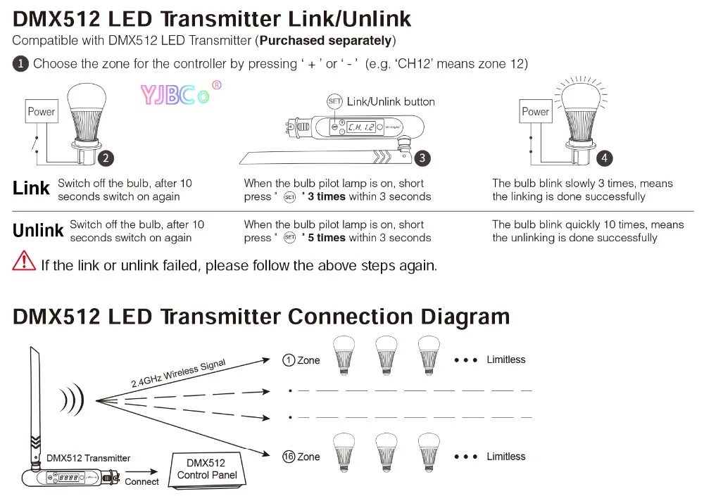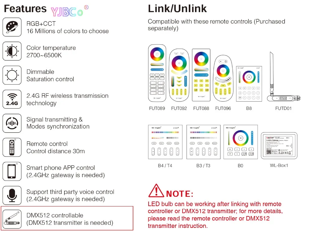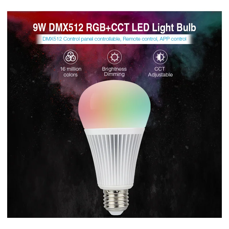 Miboxer DMX512 E27 9 Вт Светодиодная лампа RGB + CCT; Светодиодный передатчик DMX 512 светодиодный беспроводной пульт дистанционного управления 2,4 ГГц, 4 зоны RGB + CCT