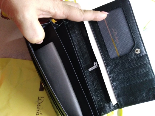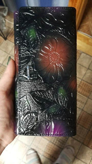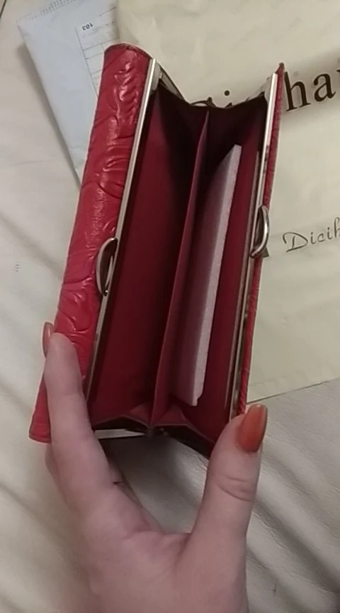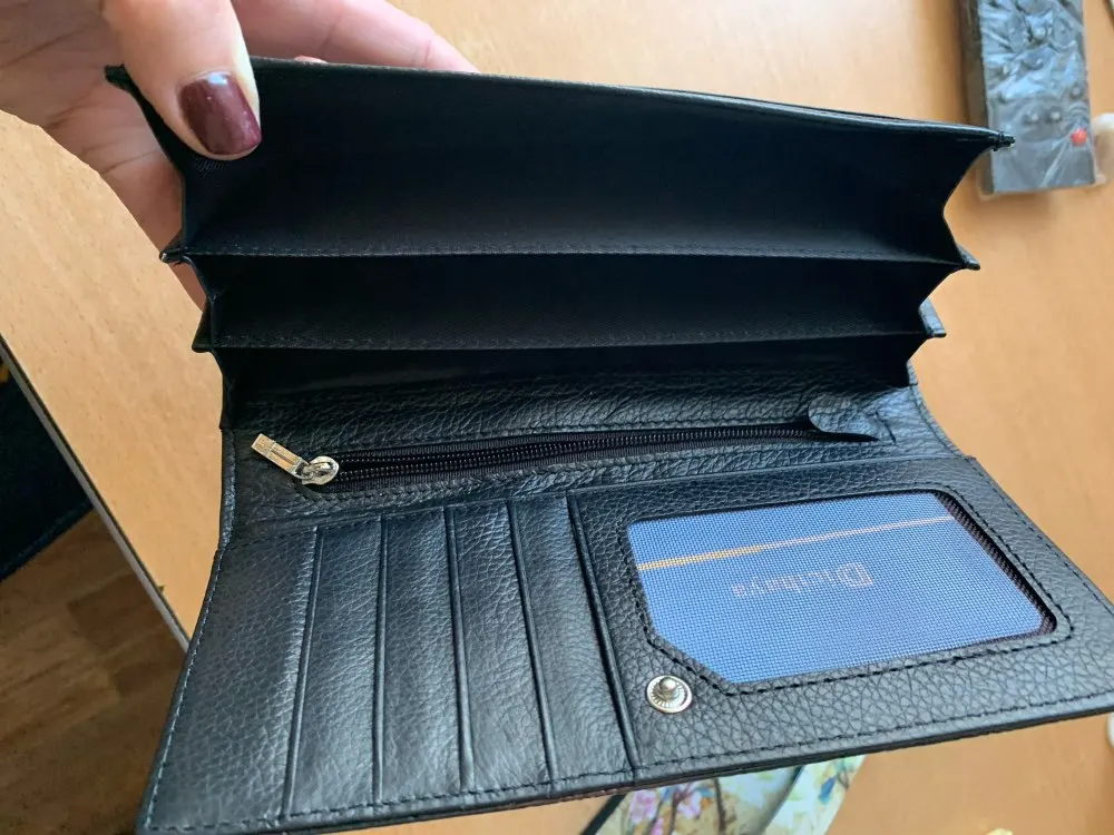Замечательный кошелёк. Покупал жене. И внешнее, и внутри замечательно. Куча отделов, как для бумажных так и большой для мелочи. Доставка быстрая.