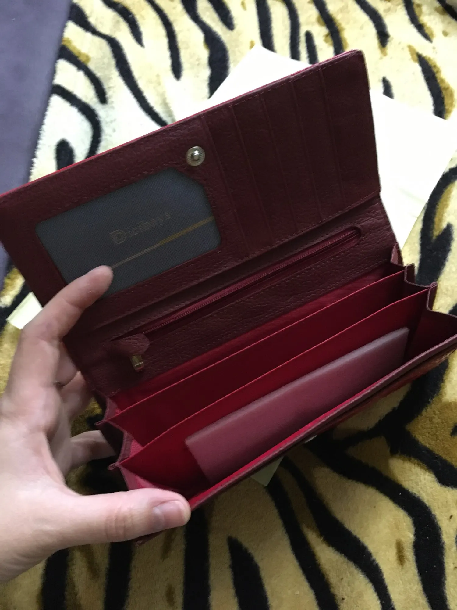 Очень красиво, просто нравится. На картинке выглядит матовый, но на самом деле более блестящий. Запах как натуральная кожа, только необычно, что внутри кошелька нет кусочка кожи. Качество действительно хорошее, за цену, которую я подвел, потому что заплатил только 14,28 евро с доставкой. Спасибо продавцу. Честный возврат этого кошелька.