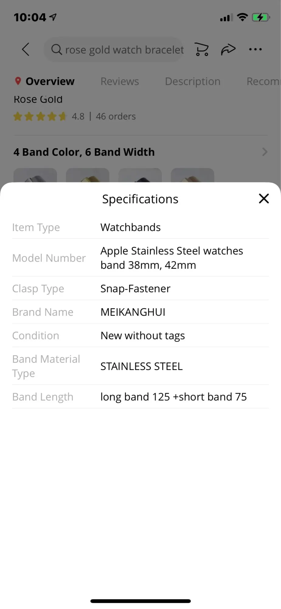 Это хороший ремешок, хорошо упакован; Однако товар не подходит для Apple Watch, как описано. Я разочарован. Я купил его после прочтения описания, и это такая маленькая лента. Я не уверен, для чего вы можете его использовать.