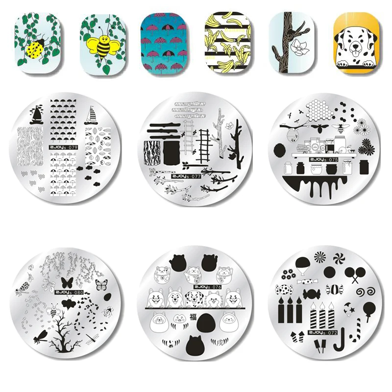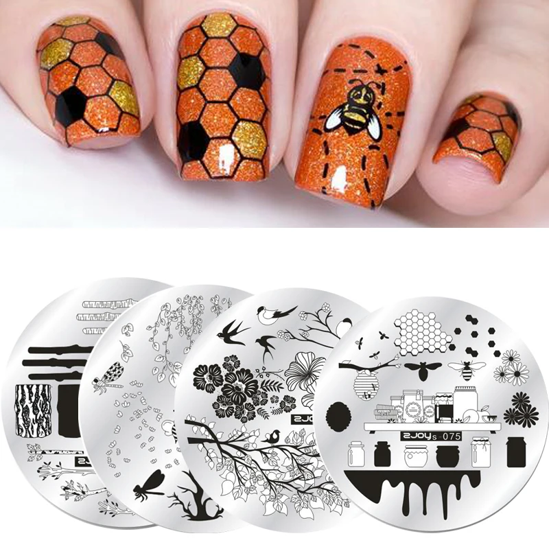 Пластины для стемпинга ногтей Zjoys, 2018, пчела, птичка, Летний цветок, милый аниме шаблон для ногтей, трафареты, маникюрный шаблон, инструмент