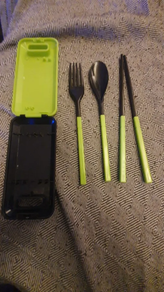 Особенности:100% новый и высококачественный!Материал: пластик АБСОсобенность: экологически чистыйТип посуды: наборы посудыРазмер коробки: 12*5,7*2,2 смДлина палочек для еды: 18,8 смДлина ложки: 16,8 смДлина вилки: 16,8 см