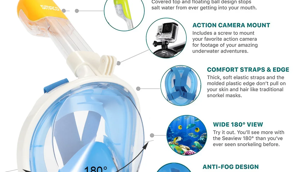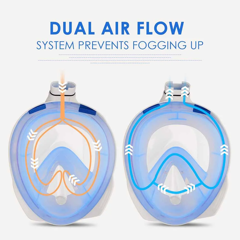 Дыхание плавно:Маска для подводного плавания с полным лицом для естественного дыхания через нос и рот;