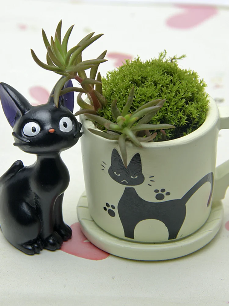 Фигурки черных кошек Хаяо Миядзаки, суккуленты, цветочный горшок, украшение, сказочные миниатюры, садовый мох, гном, украшения, ремесла