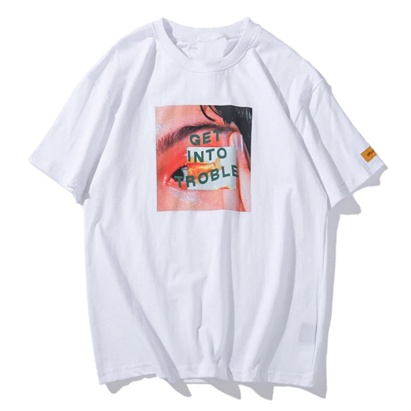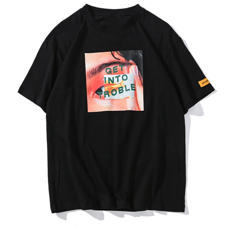 LACIBLE попадают в Troble Футболка с принтом Homme Летняя мода в стиле хип-хоп Детские футболки Повседневная хлопковая Футболка уличная Мужская футболка UP05