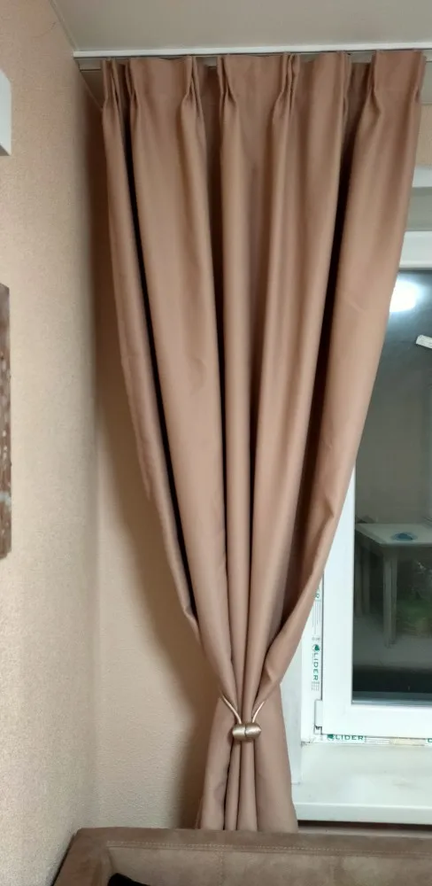 Хорошие шторы. Самоходные крючки должны конвертироваться и иметь 15 используемых на занавеске. Есть 2 занавески в гостиной и 1 в зале. Красивый цвет Аккуратный шик и современный. Очень доволен им. Теперь ей нужно только подрезать, чтобы посмотреть на булавку. Никаких контактов с продавцом.