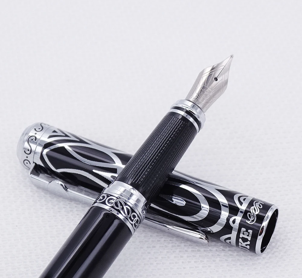 Перьевая ручка с рубиновым наконечником, черный и серебристый колпачок
