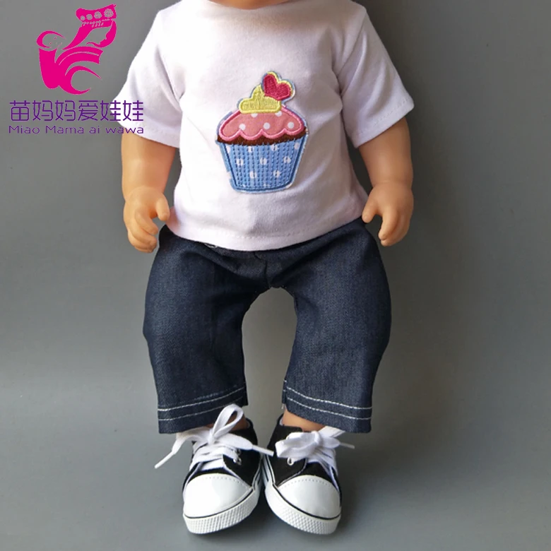 Детские куклы мультфильм футболка и джинсовые штаны также подходят для дял 18-дюймовой куклы комплект одежды, состоящий из верха Куклы Игрушки для кукольного домика