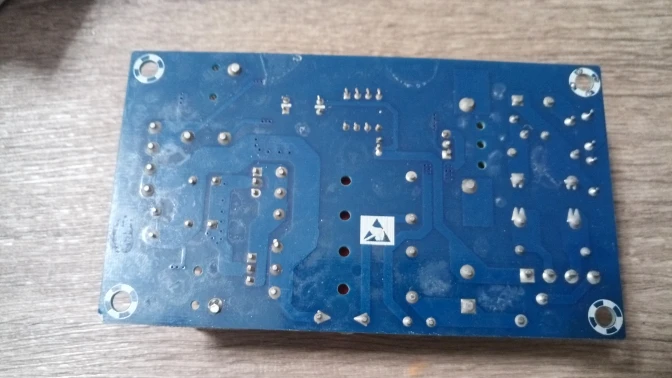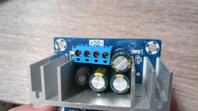 Упаковано так себе - антистатический пакет и картонная коробка, уголок платы чуток помят, флюс с платы отмыт не очень хорошо, на входном транзисторе не видно термопасты. Пайка нормальная и в целом работает, напряжение на выходе без нагрузки 12,16 вольт. Под нагрузкой пока не проверял.