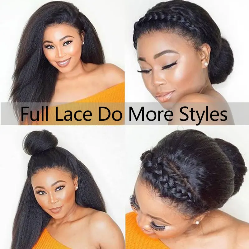 Кудрявый прямой парик, полный кружевной парик из человеческих волос, парики для черных женщин, 250 плотность, u-образный парик, яки, полный кружевной парик, кружевной передний парик, EverBeauty