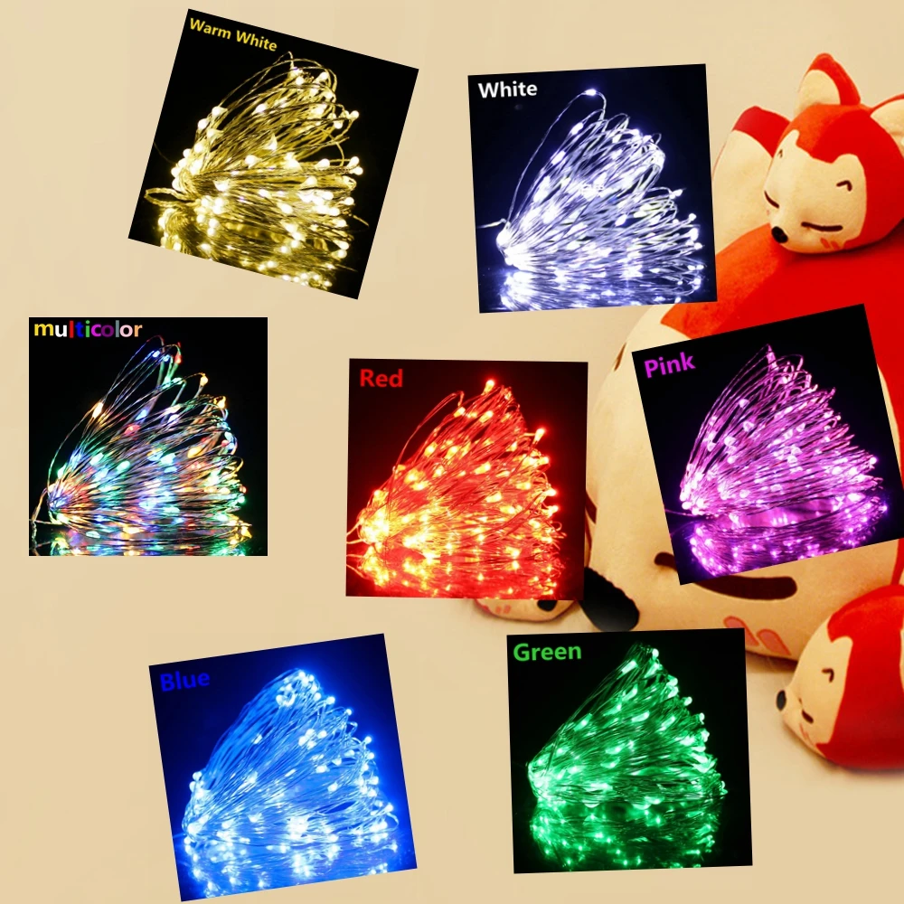 Гирлянда из медной проволоки, 1 м, 2 м, 5 м, 10 м, светодиодная, Рождественская гирлянда, украшение для помещения, свадьбы, вечеринки, батарея USB
