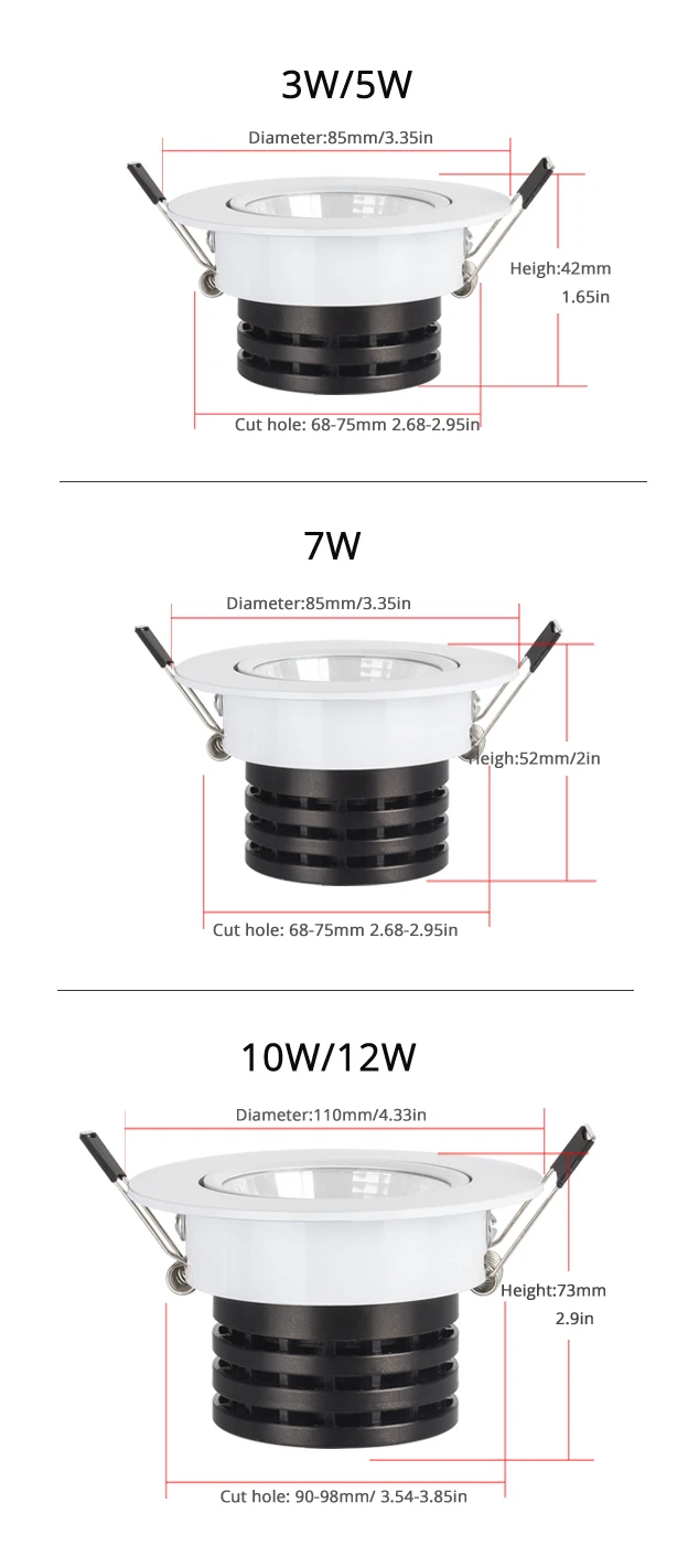 Точечный светодиодный светильник с регулируемой яркостью, серебристый, белый, черный, 3 Вт, 5 Вт, 7 Вт, 10 Вт, безопасное для здоровья Освещение для дома
