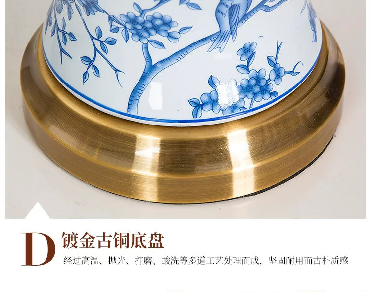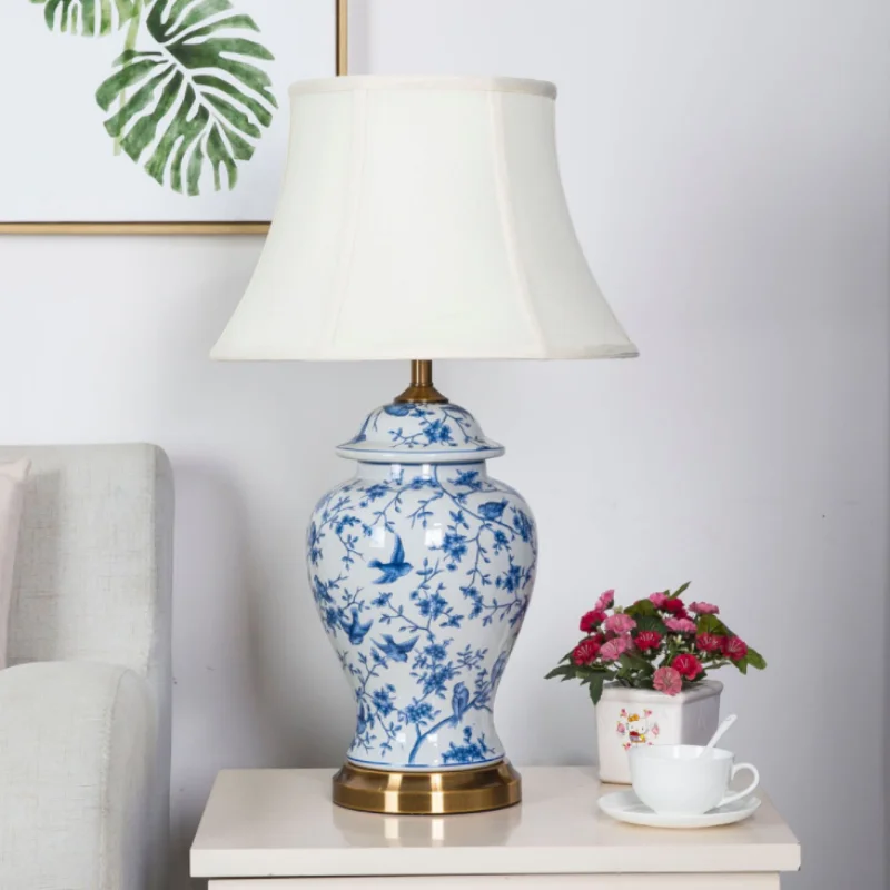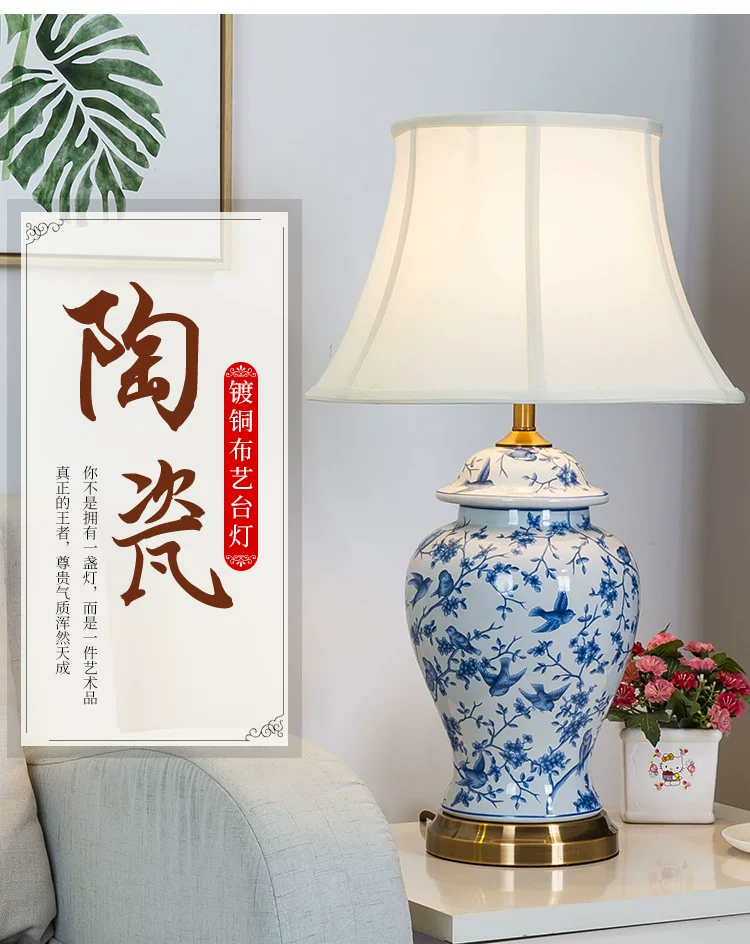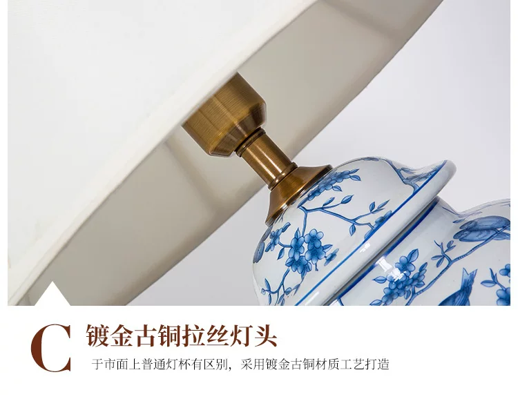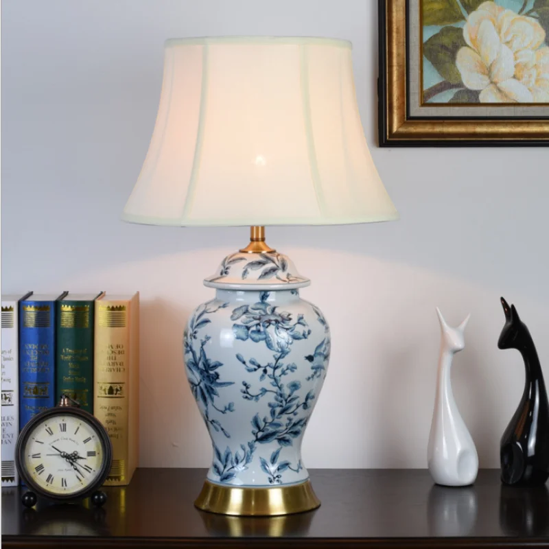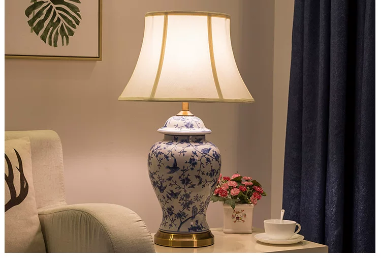 Китайская антикварная винтажная Светодиодная настольная лампа для гостиной, фарфоровая керамическая лампа для спальни, настольная лампа