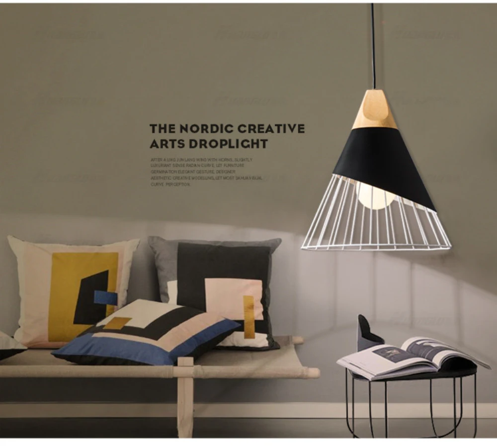 Современные деревянные подвесные светильники провод для люстры, комнатное освещение, цветная железная лампа с абажуром, освещение для столовой, домашнее освещение
