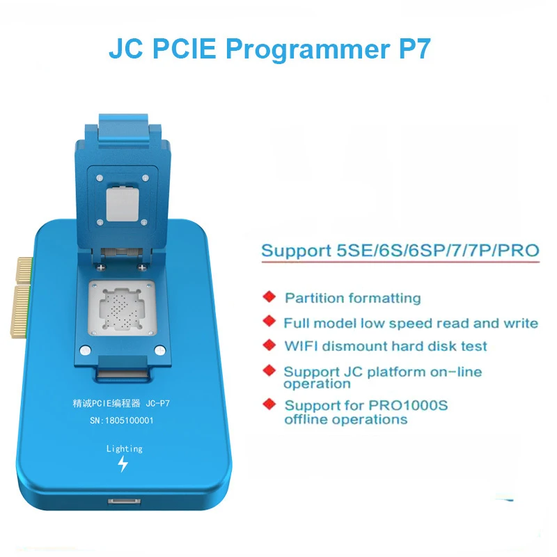 Прибор для тестирования JC P7 P8 PCIE Nand-это революционный инструмент для ремонта ошибок NAND для iPhone X 8 8 P 6S/ 6S Plus / SE / 7/ 7 Plus/ iPad Pro, функция формата NAND Flash, возможность резервного копирования данных разделения (*. Бин-файл), проверьте данные разделения и проводите анализа данных (не файловые данные, Это только данные разделения).