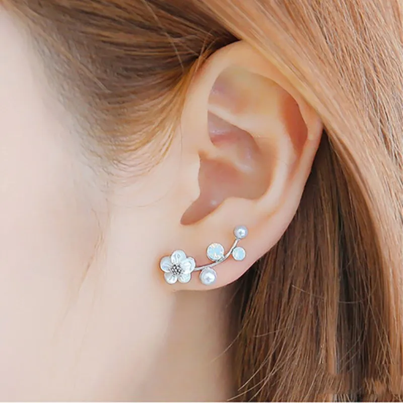 Серьги-гвоздики в Корейском стиле женские, двухсторонние ювелирные украшения в форме сердца с кристаллами циркония, цветка, цвета золото и серебро, массивные ювелирные изделия