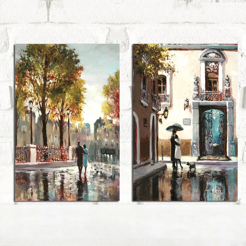2 шт., абстрактный городской уличный пейзаж для пары, холст, Постер и печать, поп-арт-стена, картина для гостиной, кафе, Декор