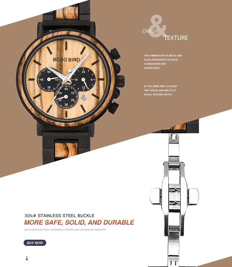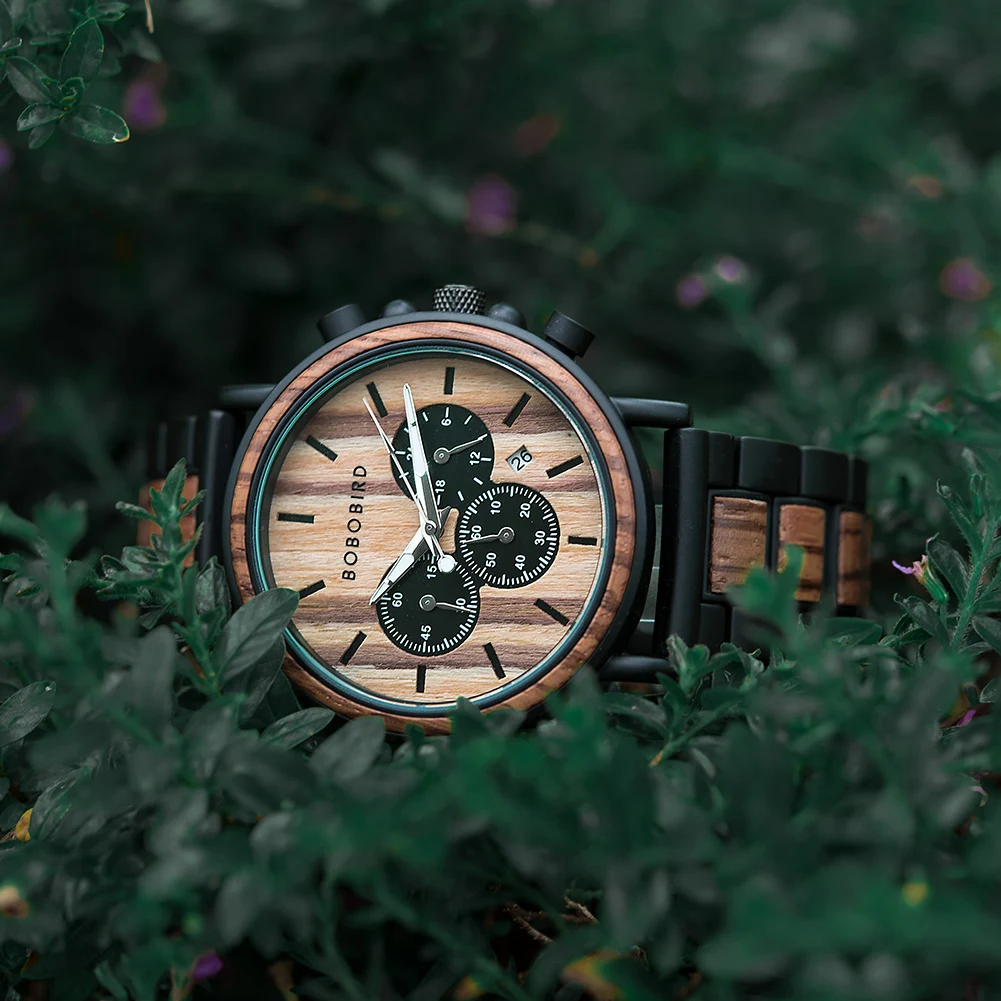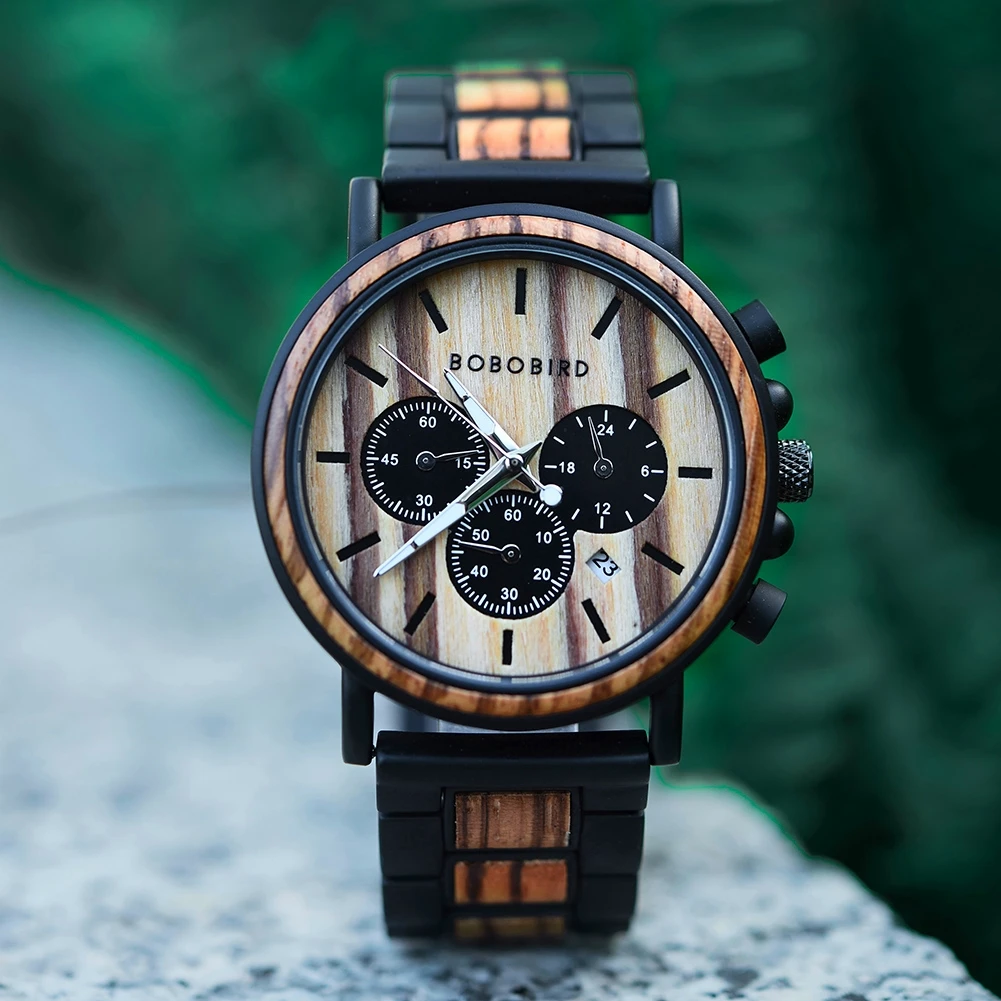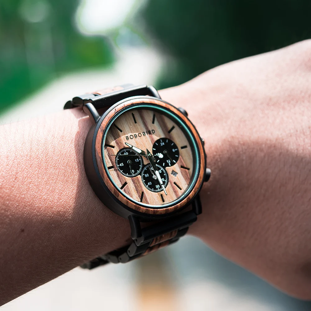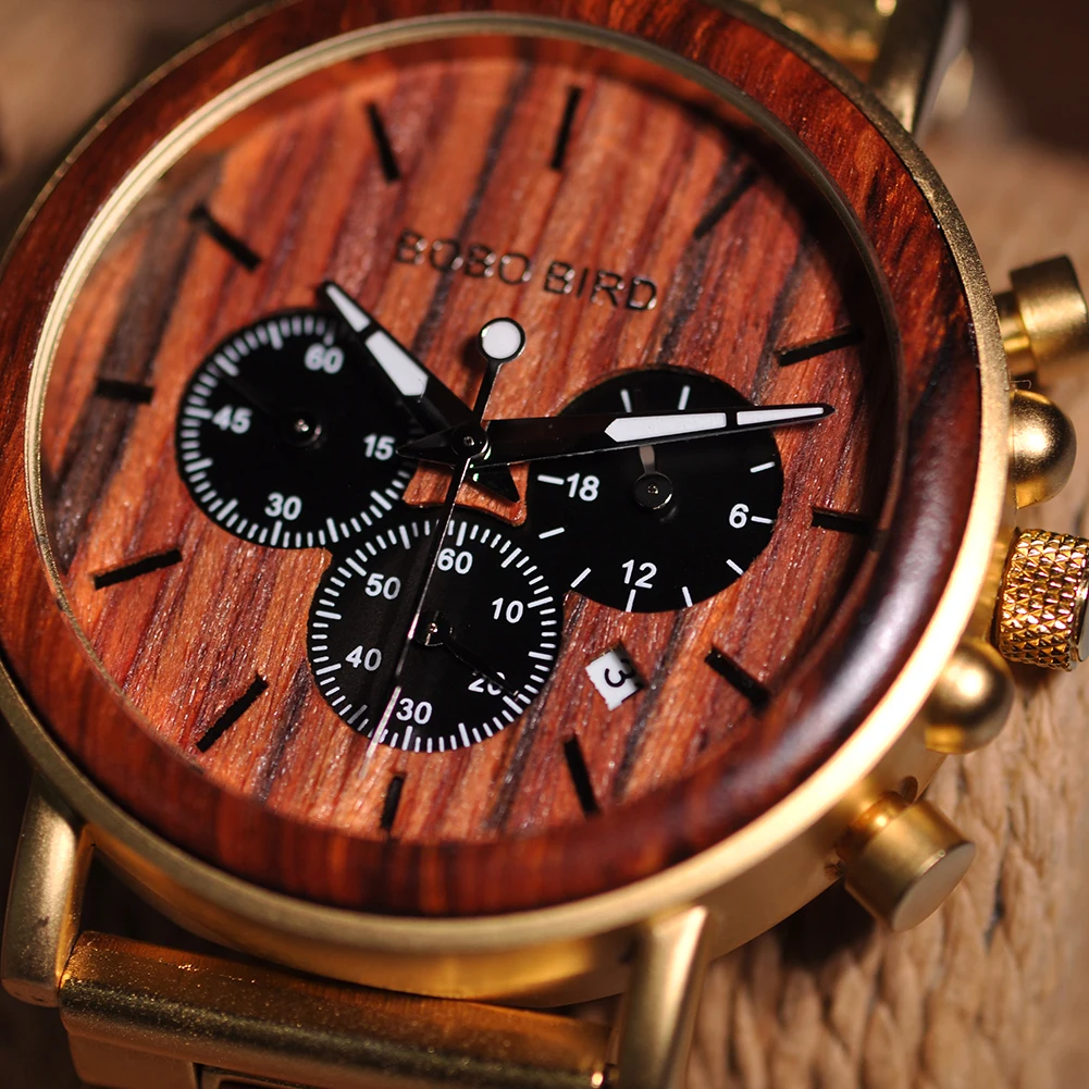 Деревянные часы BOBO BIRD, металлические мужские кварцевые часы с хронографом, мужские наручные часы с календарем, часы с логотипом на заказ, отличный подарок OEM