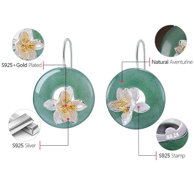 Lotus Fun Moment Настоящее стерлингового серебра 925 Натуральный камень творческий ручной Модные украшения лотоса шепчет серьги для Для женщин
