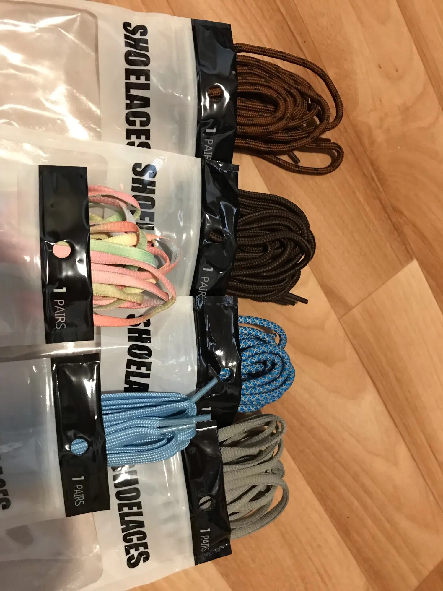 Шнурки замечательного качества. Пришли очень быстро. Упакованы были в двойной пакет. Многие из них ещё и в индивидуальные. Цвета яркие, многие из них заказывала светоотражающие. Заказ был большой, все пришло точно, как и заказала. Очень рекомендую продавца и товар. Очень довольна. Порой даже пара шнурков меняет обувь в лучшую сторону. Многие кроссовки приходят с простыми шнурками и их сразу хочется заменить, и они сразу заиграют! Спасибо огромное продавцу за отличный товар, внимательность, и за быструю доставку!