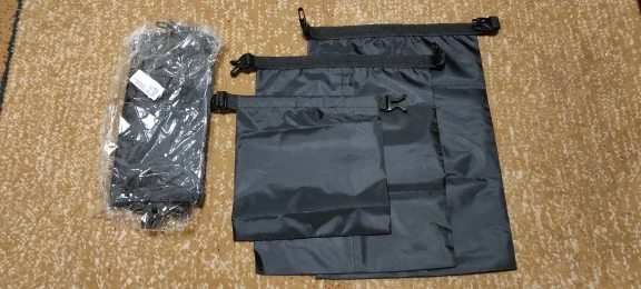 на фото мешки выглядят большими. по факту гараздо меньше. в самы маленький поместился кошелек и бумажник с документами. второй по размеру - залезло джерси. и больше тоже ничего. по счет герметичности- герметичны. но на долго не потянут.