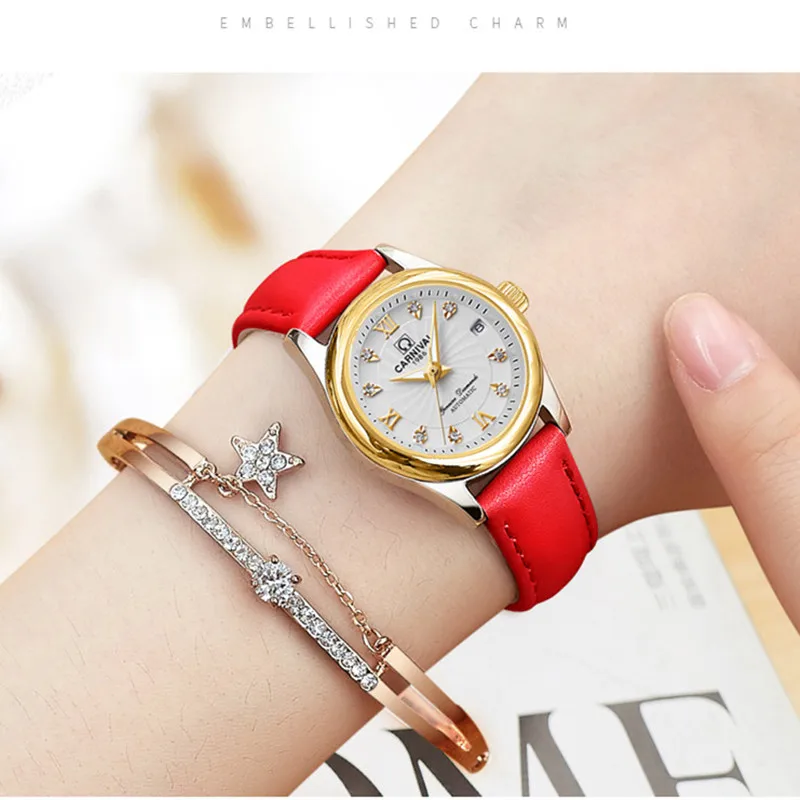 Карнавал Швейцария сапфир механические Женские часы Роскошный бренд натуральная кожа водонепроницаемые часы женские часы Баян коль saati