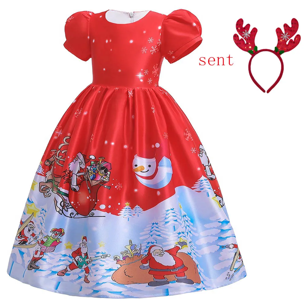 Длинные платья с рождественским принтом Санта-Клауса для девочек, д...
